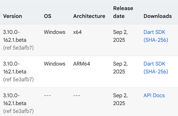 Install SDK Dart Sebelum install SDK Dart pastikan arsitektur hardware telah memenuhi persyaratan minimum, Adapun persyaratan minimum yang dibutuhkan untuk install SDK Dart seperti gambar berikut :