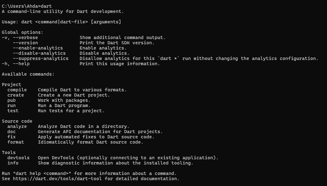 C:\tools\dart sdk\bindart pada command prompt